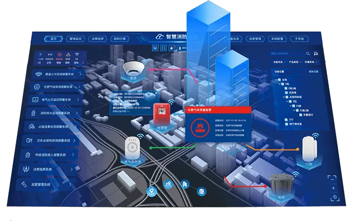 k豆钱包科技智慧消防解决方案,运用TurMass™ /LoRaWAN/Cat.1/NB-IoT物联网通讯技术,通过独立式感烟探测报警器、声光报警器、手动报警器、可燃气体探测报警器、电气火灾探测报警器、无线远程压力采集终端、无线液位远程采集终端、无线智能消防栓监测终端等为媒介,实现对于消防管理重点场所进行实施预防和管理的新型物联网解决方案。
